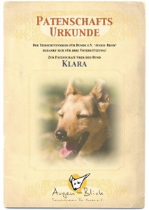 Mit einem von Ihnen selbst bestimmten, monatlichen Betrag  können Sie gezielt den Hund ihrer Wahl unterstützen! Ihre Unterstützung kommt nur diesem Hund zu Gute. Sie erhalten eine Urkunde mit Foto ihres Patenhundes. Außerdem wird Ihr Name und der Betrag Ihrer Unterstützung  in seinem, von uns angelegten Tagebuch, bekannt gegeben (wenn nicht erwünscht, bitte unbedingt angeben).