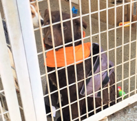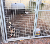 Möglichst schnell dabei helfen Zwinger aufzustellen, dort wo die Hunde aus Mangel an Unterkünften auf Schotter stehen.