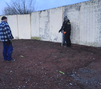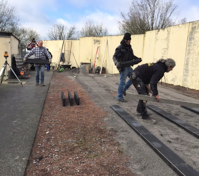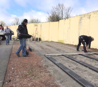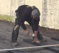 Um den korrekten Stand der Anlage zu gewährleisten ist es erst einmal notwendig das der Untergrund – die Stellfläche – aus einer geraden Fläche besteht. Das war dort, wo die Zwinger errichtet werden sollten, leider nicht der Fall. Hierfür suchten wir bereits in den letzten Wochen fachmännische Unterstützung.