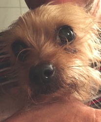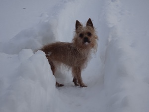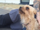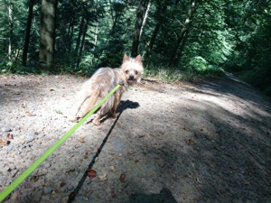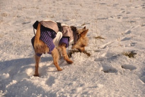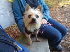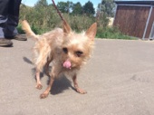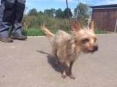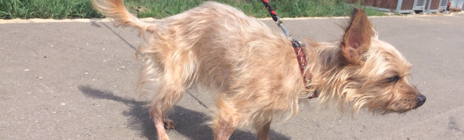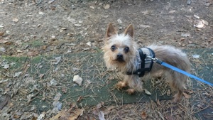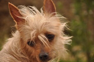 Die kleine Michlings-Hündin kam nach dem Tod ihres Besitzers in ein Tierheim. Dort verhielt sie sich sehr zurückhaltend, scheu und ängstlich. Als wir die Hündin kennen lernten lief ihre stets eingezogene Körperhaltung auf. Sie hatte große Angst. Ihre Augen standen dauernd weit offen.