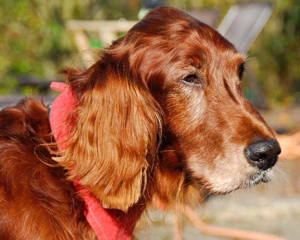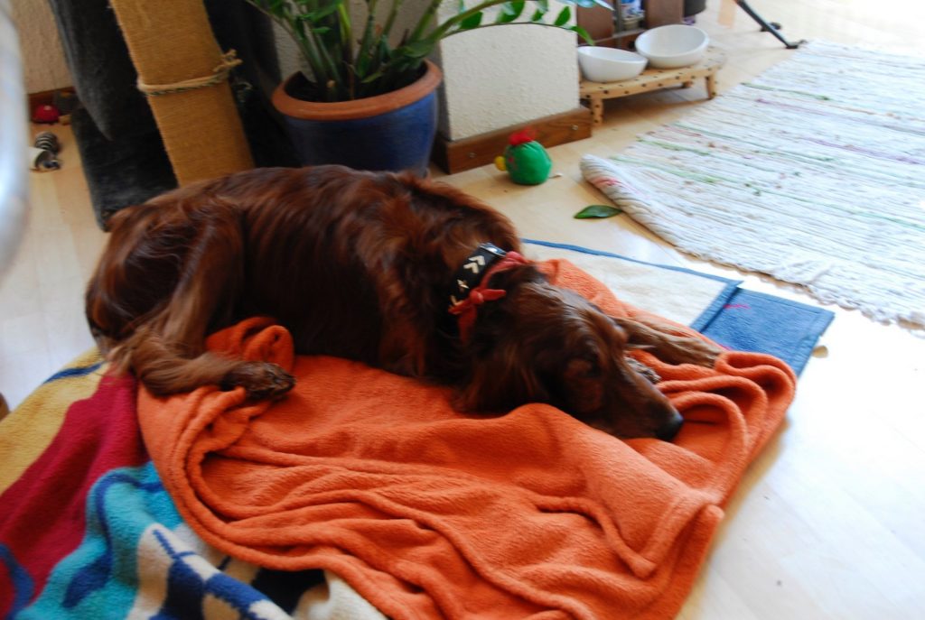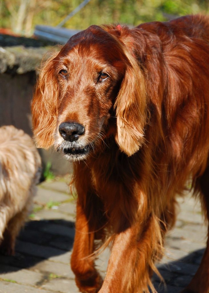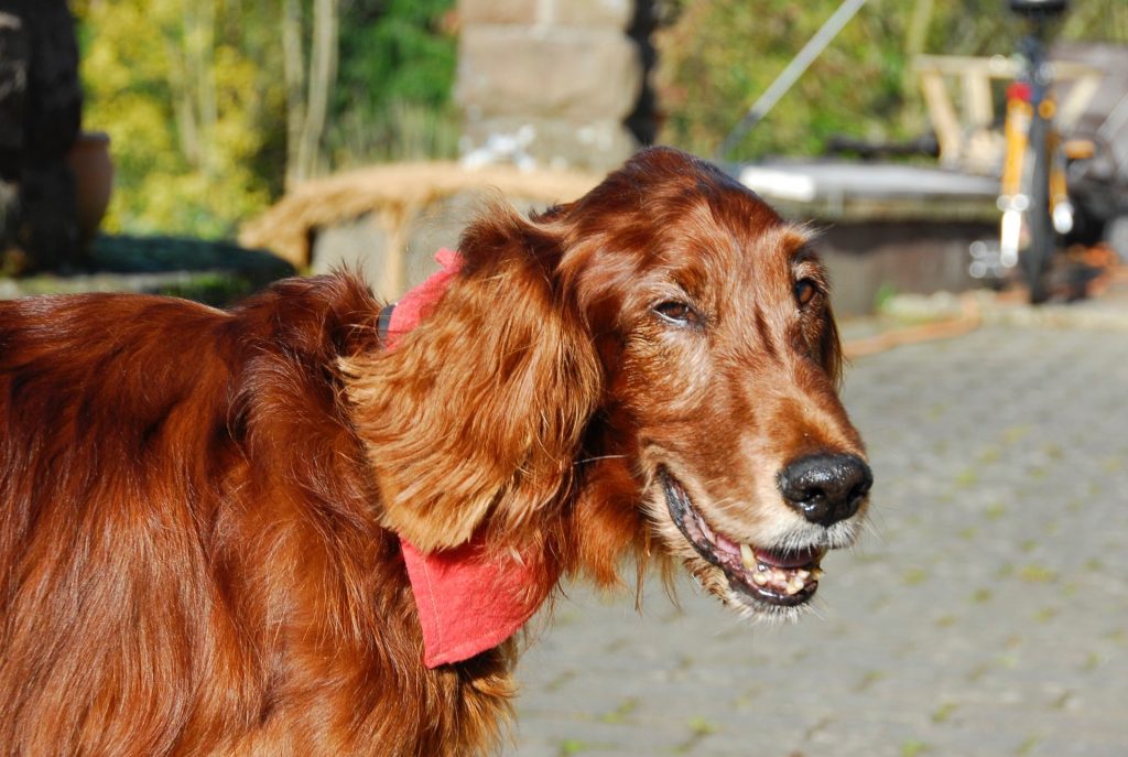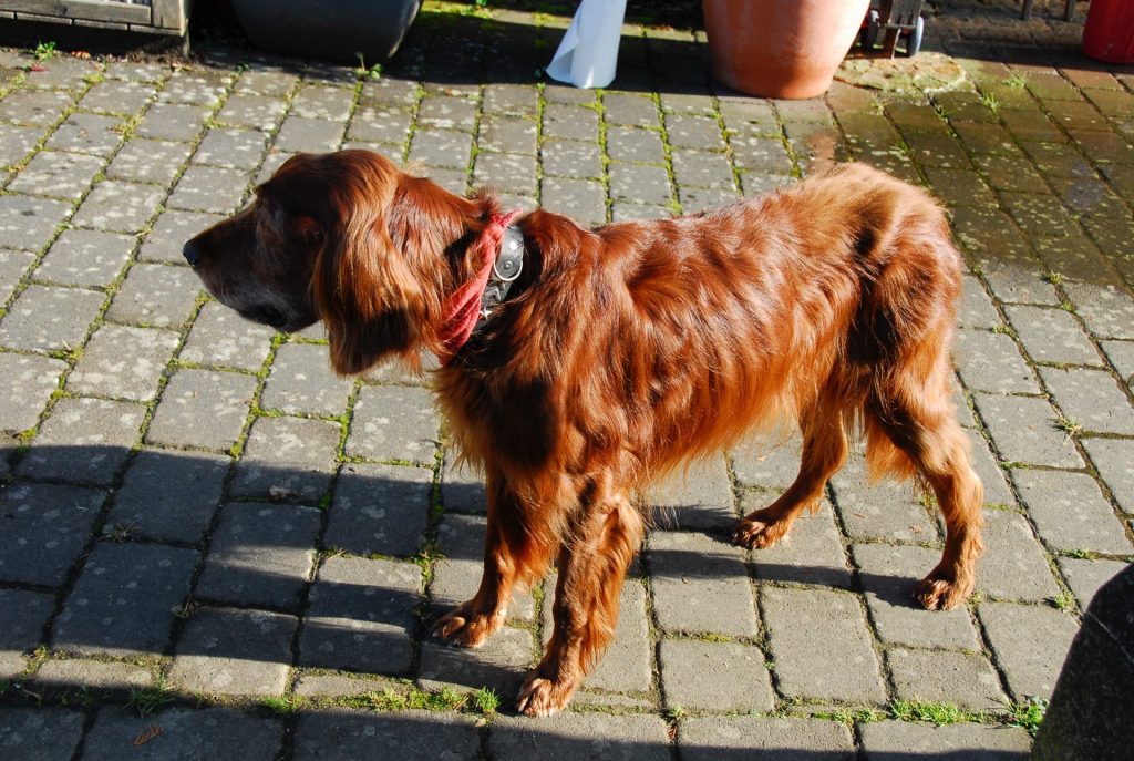 Berno, ein ca. 12 Jahre alter Irish Setter wurde von seinen Besitzern in einem Tierheim abgegeben. Er war kränklich. Er war regelrecht verzweifelt vor Trauer.