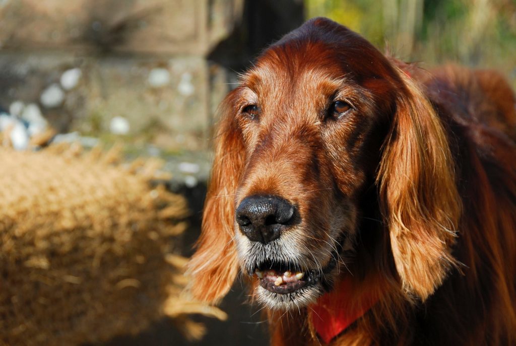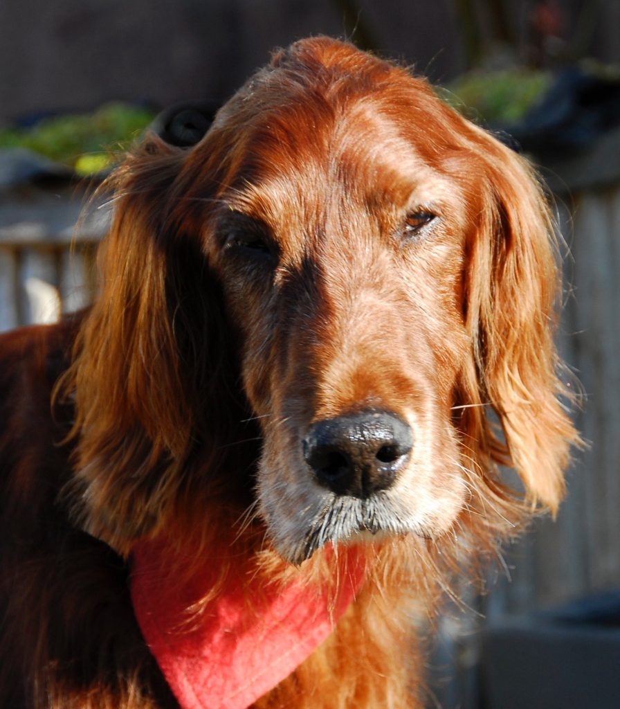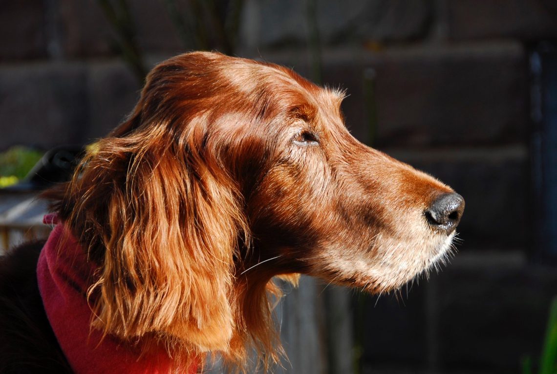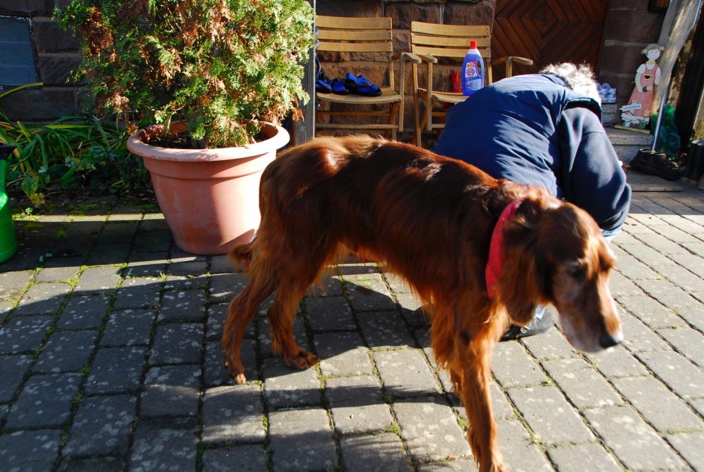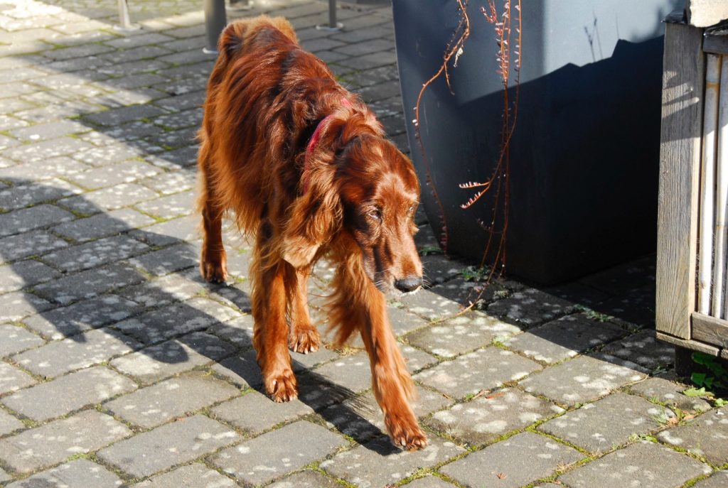 Berno, ein ca. 12 Jahre alter Irish Setter wurde von seinen Besitzern in einem Tierheim abgegeben. Er war kränklich. Er war regelrecht verzweifelt vor Trauer.