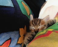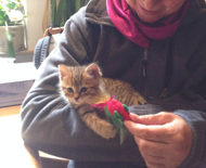 Nur in direktem Körperkontakt kam er zur Ruhe und das Schreien hörte sofort auf. Also trug ich ihn, am Ende war es eine ganze Woche lang, mit mir umher. In meinem Pullover, oder einem weichen, gestrickten Schlauchschal auf meinen Bauch gebunden war die emotionale Welt des kleinen Katzenkindes wieder in Ordnung.