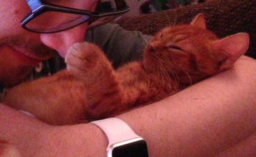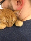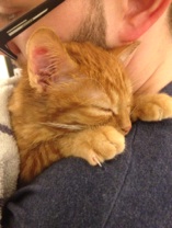 Mittagszeit. Wieder wurde ich gefüttert. Ich war müde und durfte am Hals meines Lieblings-Menschen einschlafen. Ich freute mich jeden Tag auf Futter und die Geborgenheit. Ich bin in Sicherheit.