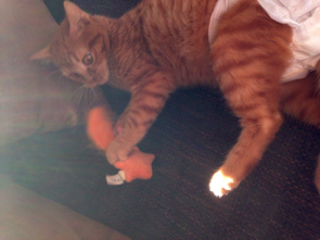 Harry mag alles was sich bewegt. Egal ob es die Finger seiner Menschen sind oder eine Spielzeugmaus. Alles wird gefangen und anschließend verhört. Einfach goldig.