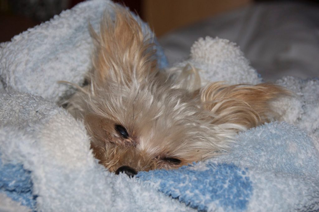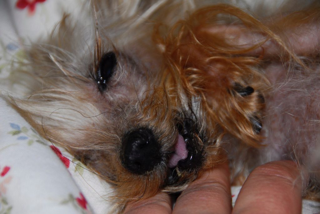 Nach 7 Tagen intensiver Betreuung. Lieschen wog 1.000 g, wankte aber noch vor Schwäche. Ihre Haut war entzündet, mit juckenden Pusteln übersät. Harn und Kot konnte sie nicht halten. Durchfall war verantwortlich für den Wasserverlust. Und gerade das Fressen wurde zur Qual. Fraß Lieschen panisch vor Hunger zu große Mengen, bekam sie schlimme Bauchkrämpfe.