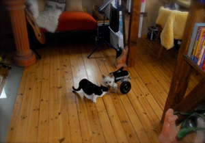Eine tolle Sache, hat man sich optisch und emotional erst einmal daran gewöhnt. Das aber ging bei uns sehr schnell, angesichts der glücklich sausenden Liesel. Diesen Rollwagen hat Markus van den Boom gebaut. Es gab und gibt immer wieder Menschen, die Liesel das Leben lebenswert machen. Künstler, die mit ihren Leistungen kleine Wunder wahr machen. Der Tag des NIE WIEDER LAUFEN KÖNNENS ist somit noch einmal in die Ferne gerückt. Danke Herrn van den Boom!